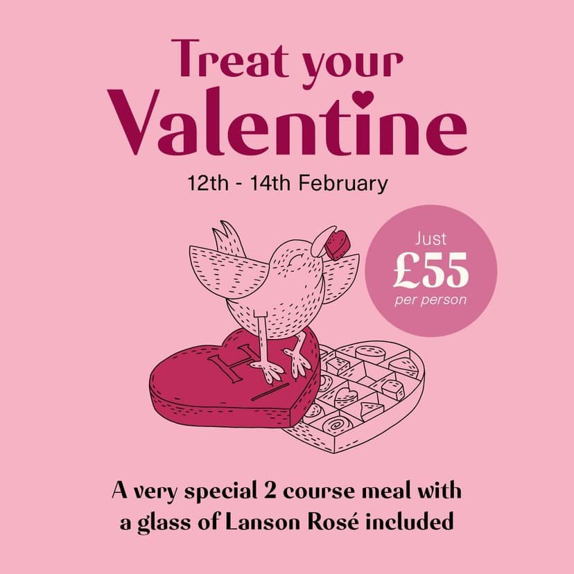 Celebrate Valentine’s at The Queen's Head with our indulgent 2 course set menu, featuring beautifully crafted dishes and a glass of Lanson Rosé for just £55 per person.